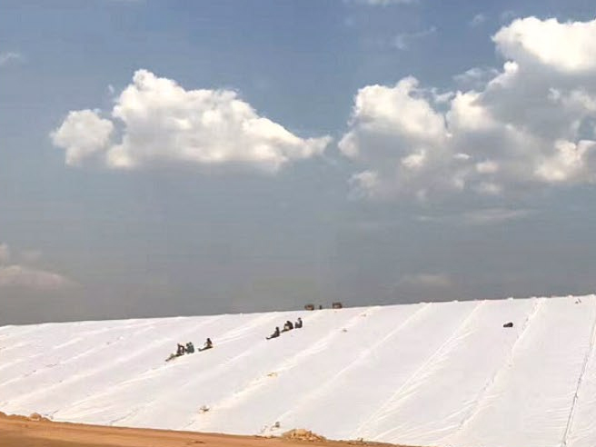 it is composite geomembrane with non-woven geotextile as as the base material and polyethylene, polyvinychloride, etc. as the film material. lt includes one cloth + one film, two cloths + one film, multiple cloths + multiple films